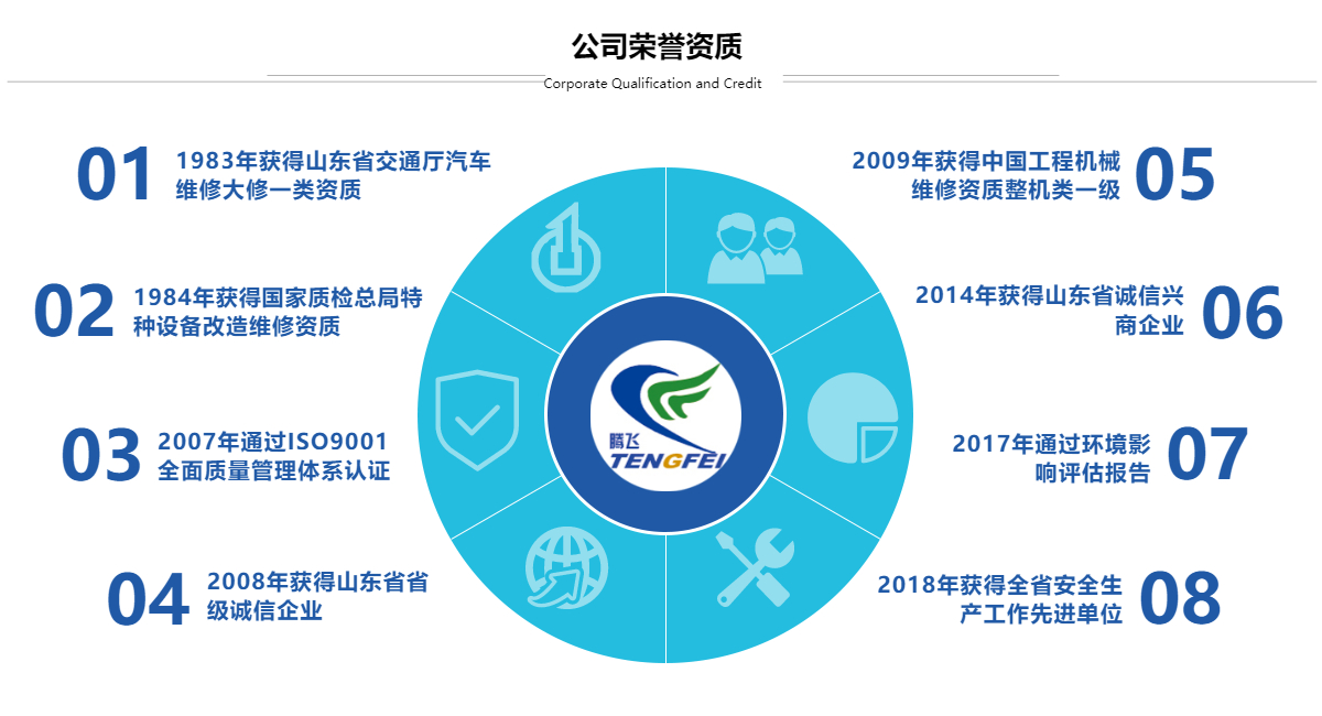 泰安腾飞工程机械有限公司,中联重科山东维修中心,拥有自营备件中心库。坐落于泰山脚下,泰安市东部新区,交通方便。公司是以工程机械维修,备件供应、二手工程机械交易为主营。是华北、华东地区工程机械维修规模较大、备件齐全、服务范围广的维修服务企业。中联重科全系列汽车起重机售后服务维修,承接国内外汽车起重机、挖掘机、装载机、叉车、道路救援服务等各种工程机械修理、保养,中联重科山东备件中心库、徐工、三一、泰安起重机全车配件。同时是潍柴、上柴、法士特变速箱、汉德车桥的服务站和备件经销商,是人保、太平洋、中华联合、平安等保险公司战略合作拆解定损维修中心。公司占地30亩,办公区2000平方米,维修车间8000平方米。试车坪6000平方米。备件库面积2000平方米。员工120余人,技术人员80余人,工程师4名。山东省交通厅一类大型汽车维修资质、中国工程机械维修整机类一级资质,并通过ISO9001质量管理体系认证。公司由中国工程起重机泰...